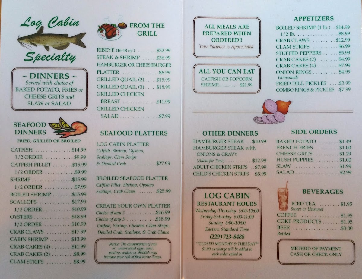 Welcome to Log Cabin Restaurant, a hidden gem nestled in Blakely, Georgia, on Lower River Road. This cozy establishment boasts a menu that celebrates Southern comfort food with an emphasis on quality and taste.